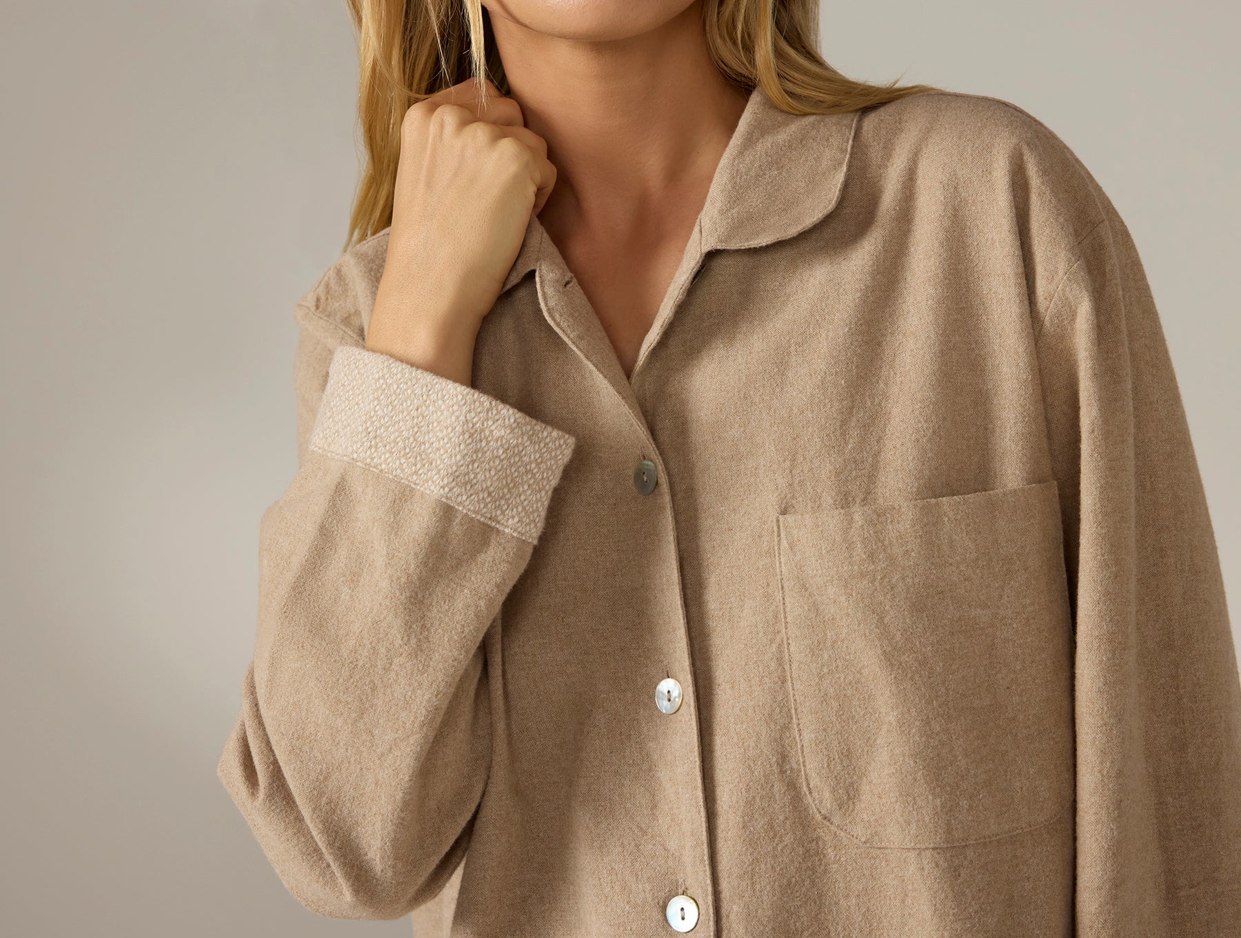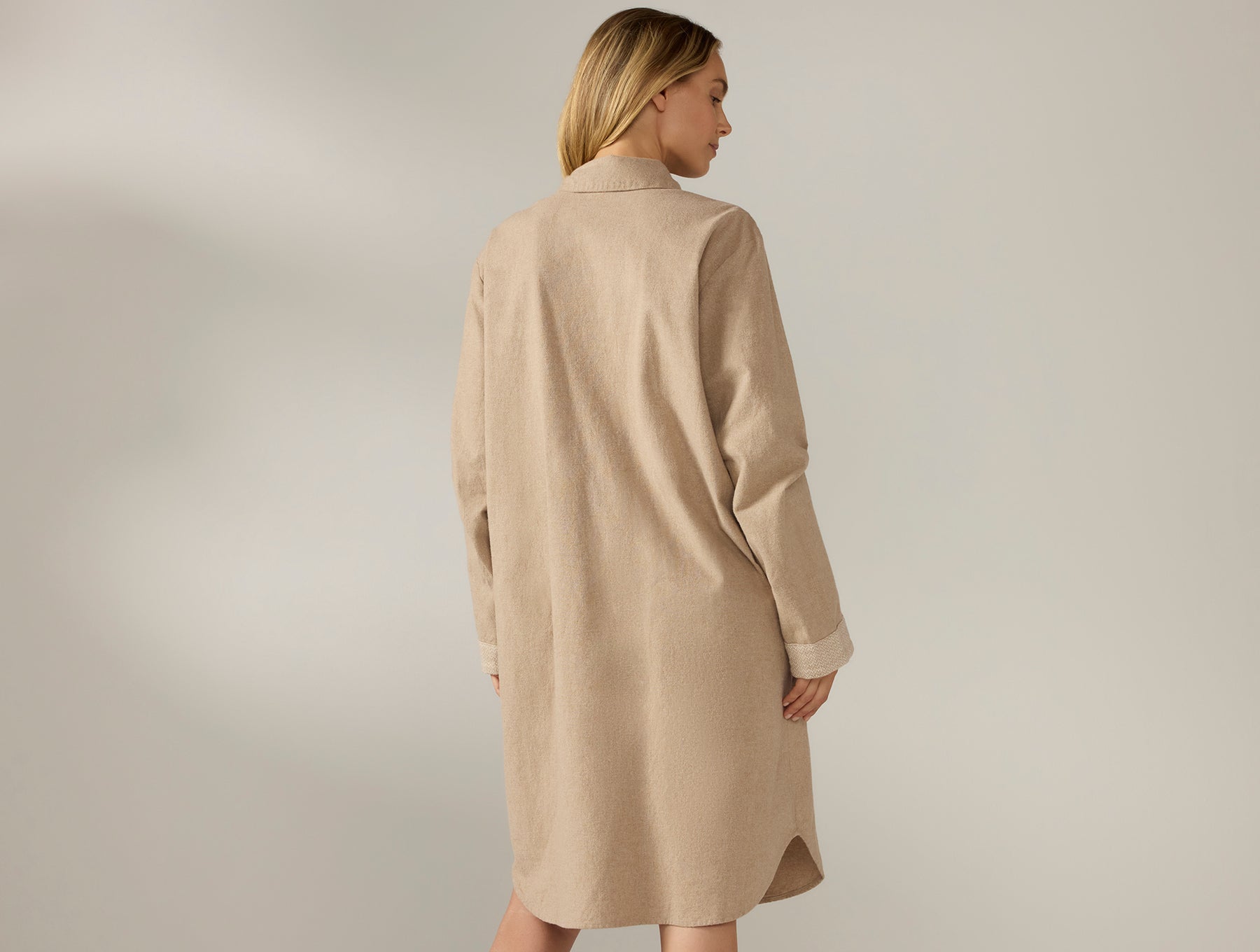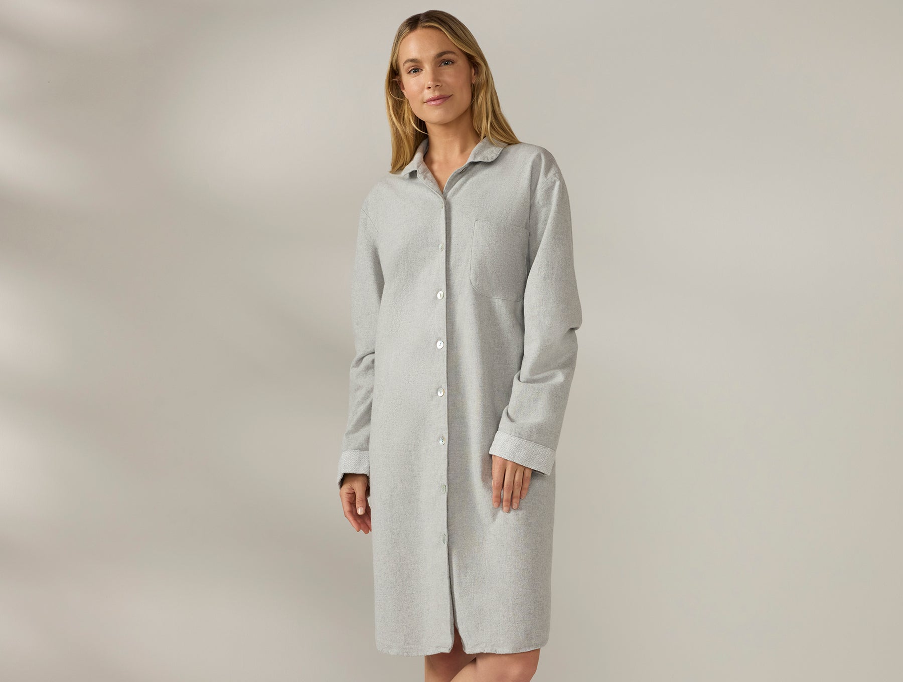 Slip into the cozy luxury of our Women's Cloud Brushed Organic Flannel Nightshirt, crafted from thick, 100% organic brushed cotton for velvety softness and warmth. This nightshirt features a relaxed fit with a slightly rounded collar and hem for a refined look. Shell buttons and contrast flannel cuffs add a touch of classic style. For the best fit, wash cold and tumble dry on low before first wear.