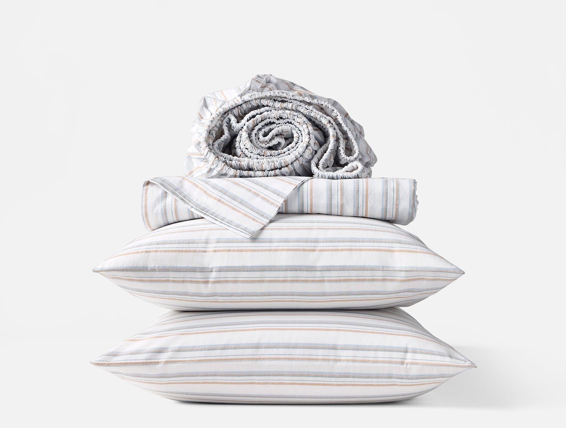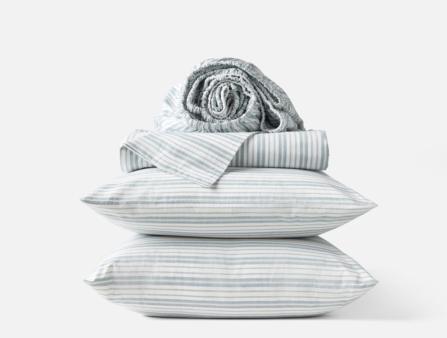 - Sheet set includes flat sheet, fitted sheet, and corresponding pillowcase(s):