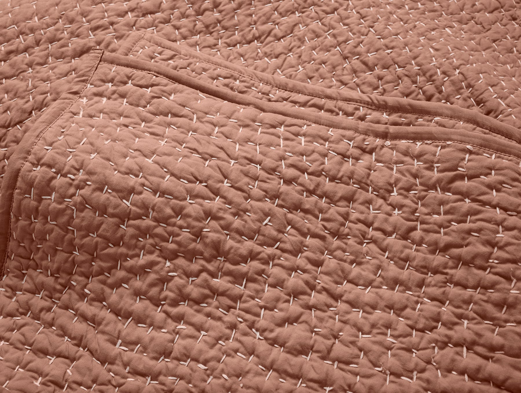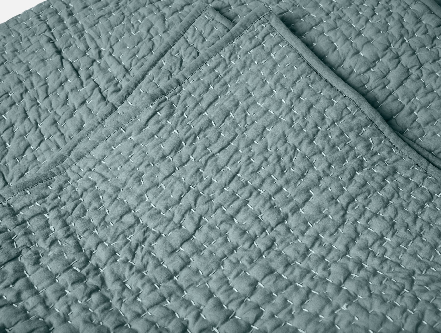 Inspired by the traditional kantha quilts of India, our quilt is hand embroidered with waves of tiny, contrasting stitches, for great texture and color from end to end. On the Undyed version, we've used multi-color thread for vibrant variation. Crafted of soft, breathable organic cotton, inside and out, it's ideal for year-round use – perfect on its own in the warm months and easy to layer with a blanket or duvet for wintry nights.
