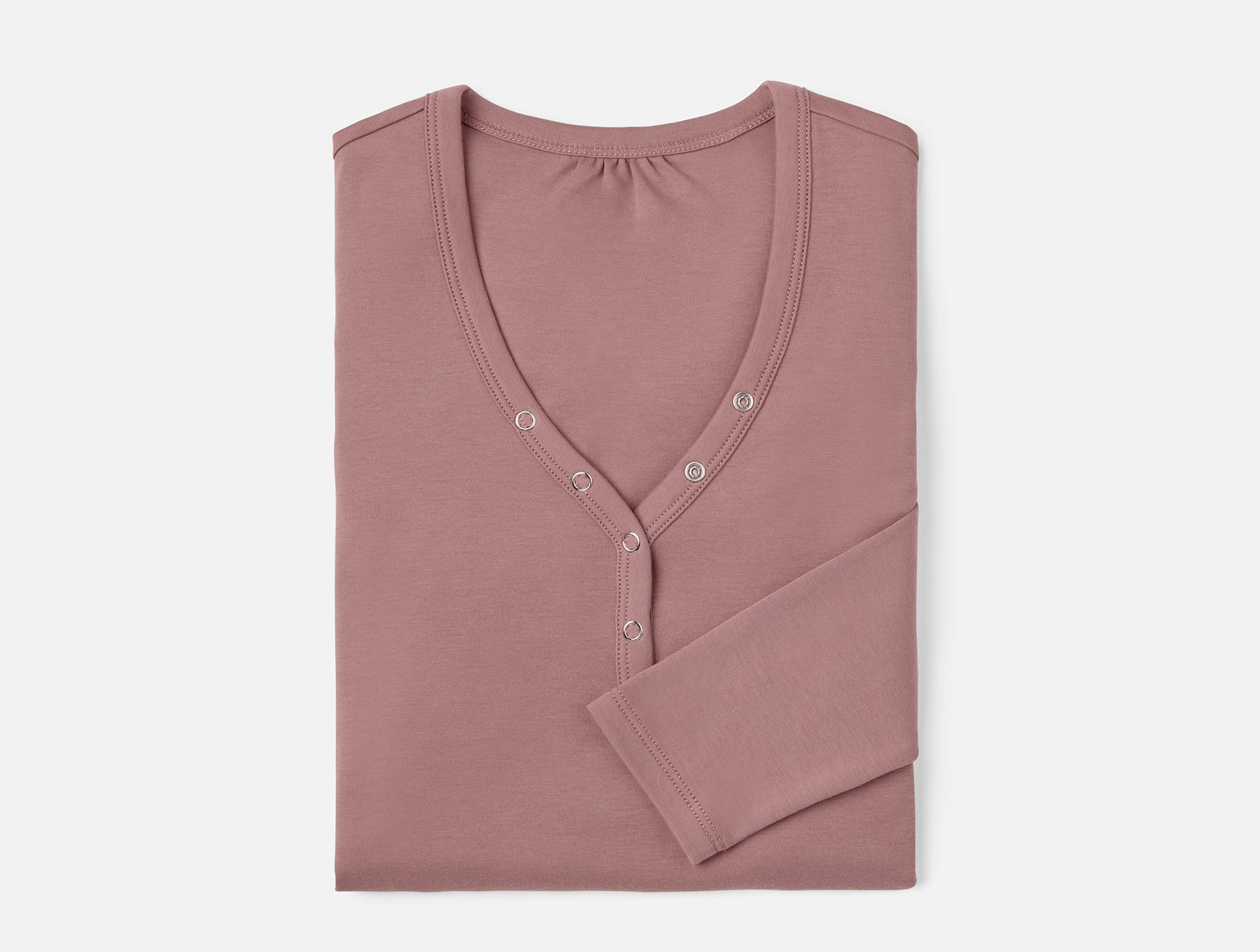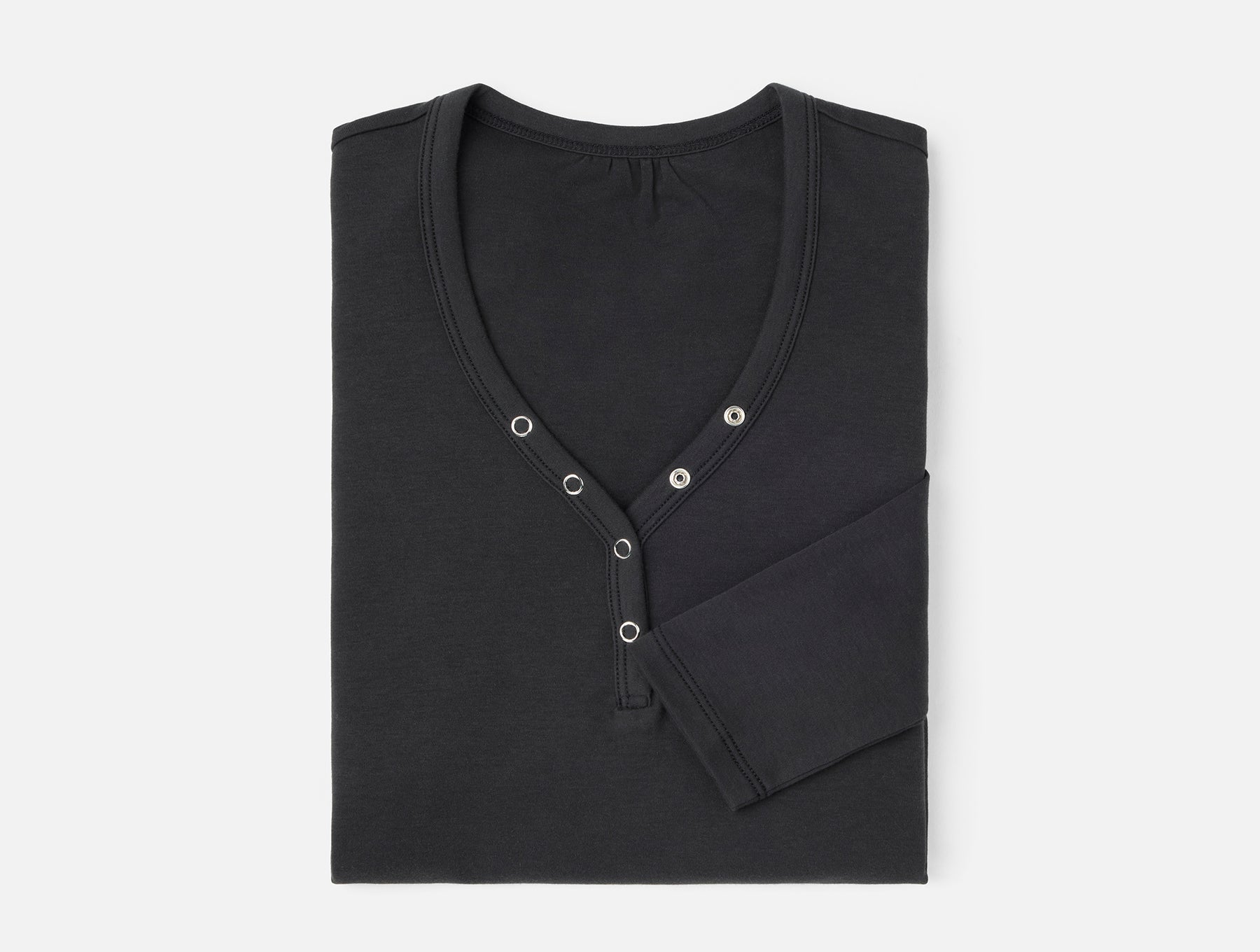 Crafted from 100% GOTS certified organic pima cotton, our Pima Organic Knit Henley delivers unmatched softness that only gets better over time. Long sleeves keep you warm, but the fabric’s natural breathability ensures you’re never too hot. Designed with a relaxed, comfortable fit so you can lounge in it, live in it, or even sleep in it. If in between sizes, we recommend sizing down.